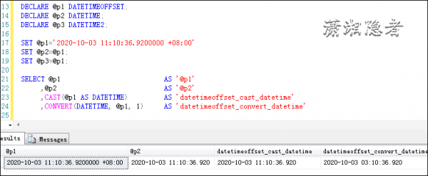 注意:datetiemoffset转换为datetime2也是如此,这里就不赘述了。