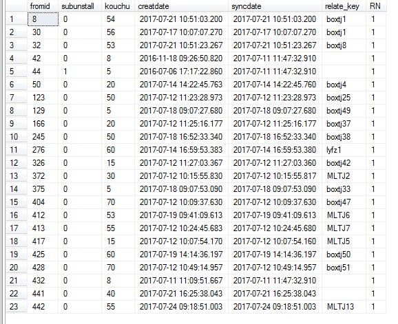 选择* from(从id中选择,sub unmount,kouchu,creatdate,syncdate,relay _ key,tansha SEO row _ number()over(按id从顺序分区,由creat date desc)rn from box count _ froms _ open)t其中rn=1;