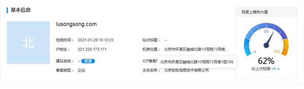 为了详细了解百度诊所的工具信息,松松编辑杰哥以lusongsong.com为例,利用百度诊所获取了以下卢松松博客的网站信息: