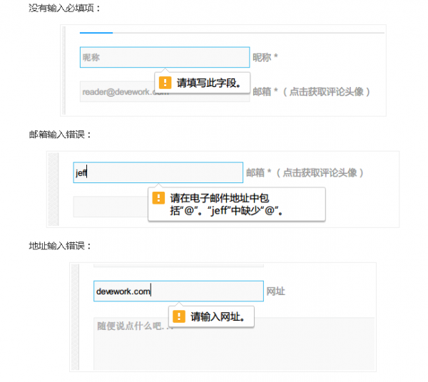 表单验证是防止垃圾评论的一个方面。wordpress自带严格的验证方法。在HTML5的推广和支持下,我们可以在WordPress评论表单中加入Html5表单验证方法,增加用户的良好体验