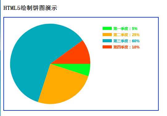 Html5提供了强大的绘图API,让我们可以使用javascript轻松绘制各种图形。本文将主要说明用HTML5绘制饼图(统计图)的方法。先看饼图效果: