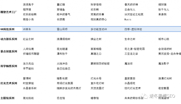 既有灯光秀,也有主题馆,还有创意景点,还有动态游乐,这些加起来,一个不是很专业,一个是关键词太多。如果完成,它们只能分散到列页面和内容页面。栏目页面和内容页面的权重太低,难度太大,不如每个大类开一个网站合适。