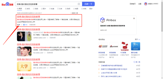 这时我们可以看到,在搜索全称的时候,微博的首页也出现在了第一位。如果能在第一时间搜索到完整的标题,说明网站参与了排名,但只说了排名的好坏。