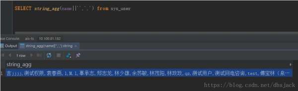 一从sys_user中选择string_agg(name|| ' ',',')