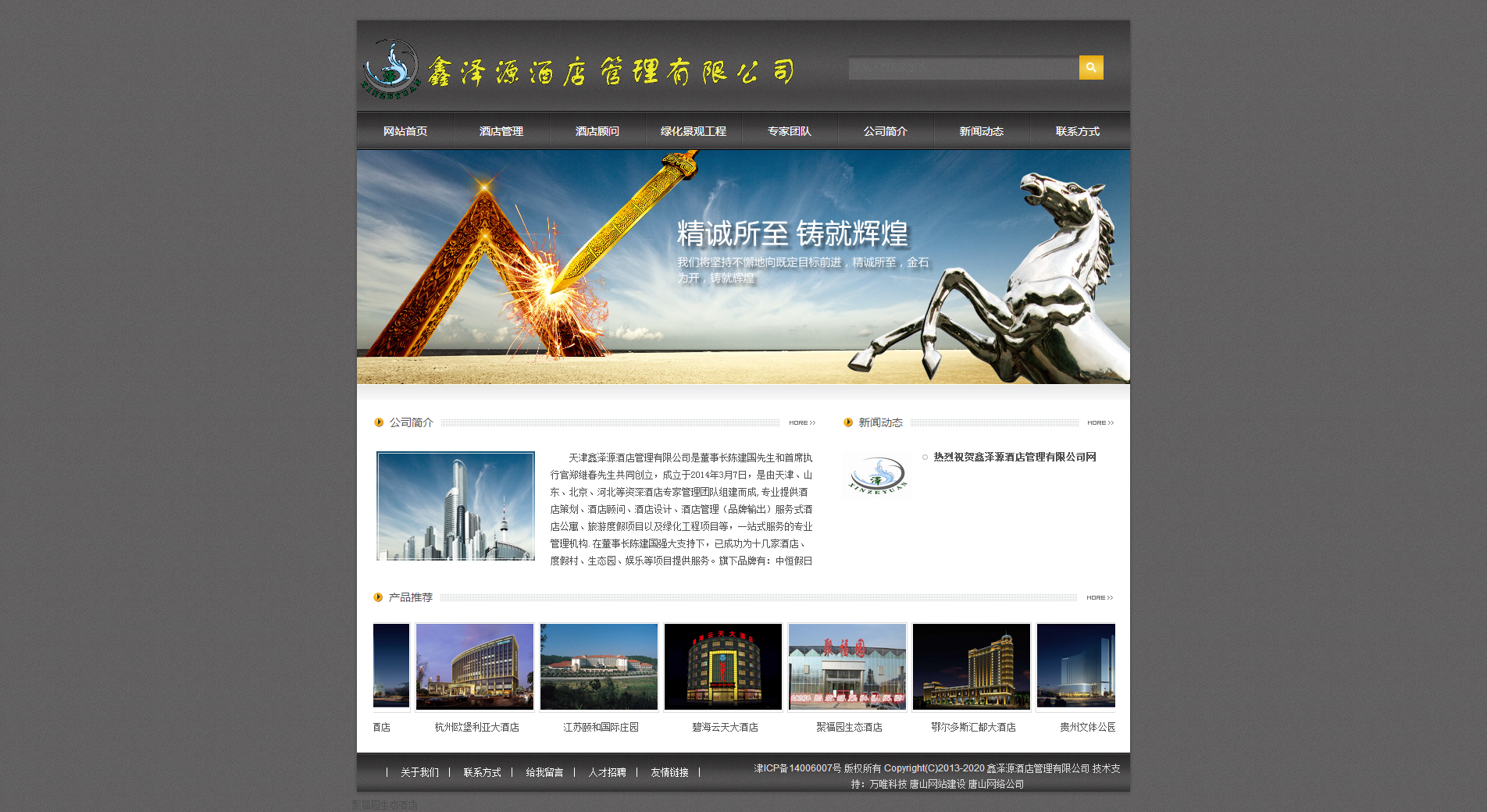 天津鑫泽源酒店管理有限公司是董事长陈建国先生和首席执行官郑继春先生共同创立,成立于2014年3月7日,是由天津、山东、北京、河北等资深酒店专家管理团队组建而成,专业提供酒店策划、酒店顾问、酒店设计、酒店管理(品牌输出)服务式酒店公寓、旅游度假项目以及绿化工程项目等,一站式服务的专业管理机构.在董事长陈建国强大支持下,已成功为十几家酒店、度假村、生态园、娱乐等项目提供服务。旗下品牌有:中恒假日酒店、聚福园林绿化工程有限公司、河北唐山聚福园生态酒店