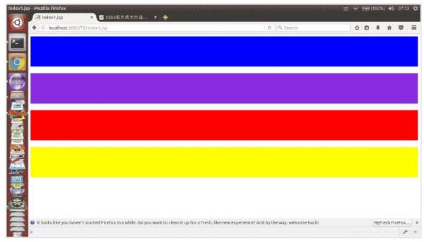 能够见到div左右中间的空隙清除了.殊不知,最上边和最左边仍然有空隙.