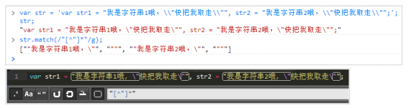 var str1 = "我是字符串数组1哦,\"赶紧我拿走\"", str2 = "我是字符串数组2哦,\"赶紧我拿走\"";