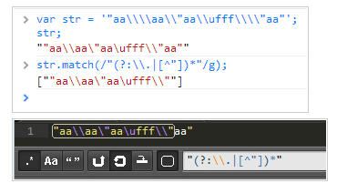 因此 这一搭配結果会是 "aa\\aa\"aa\ufff\\" 后边的 aa" 没法搭配到。