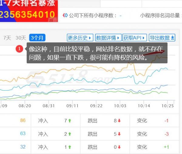 最先是第三方关键字排名数据分析,大家一般都喜爱应用百度站长工具、爱站网、5118来剖析大家的关键字排名总数,由于这种专用工具全是每天更新一次,因此 我们都是能够在第三方seo工具中寻找网址现阶段归属于发展期,還是降落期的规律性,假如你参照一周的排行规律性,不断降低,很有可能网址现阶段遭遇着被被降权惩罚的难题,要查验网址了。假如一直处在发展期,或是稳定期,那麼就没有问题,第三方关键字统计分析,是分辨网址是不是存在的问题的一个关键规范(强烈推荐:5118)。