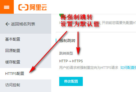 它是因为林三应用的阿里云主机,并打开了cdn加速的实际效果。此刻要是登陆控制面板,在https配备,在自动跳转种类里边“改动配备”,将值改动成默认设置,也就是http和https另外能够登陆。
