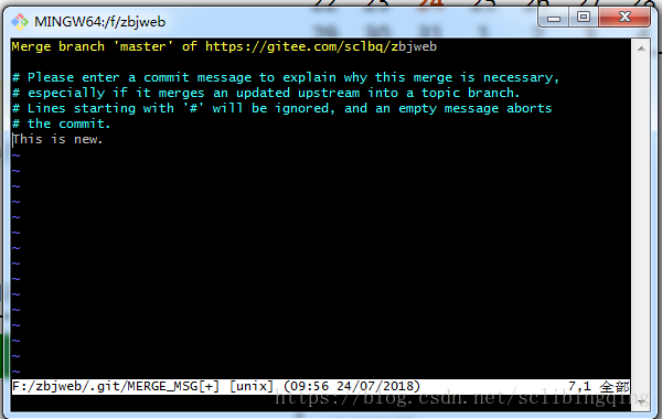 git 在pull或者合并分支的时候有时会遇到这个界面。可以不管(直接下面3,4步),如果要输入解释的话就需要: