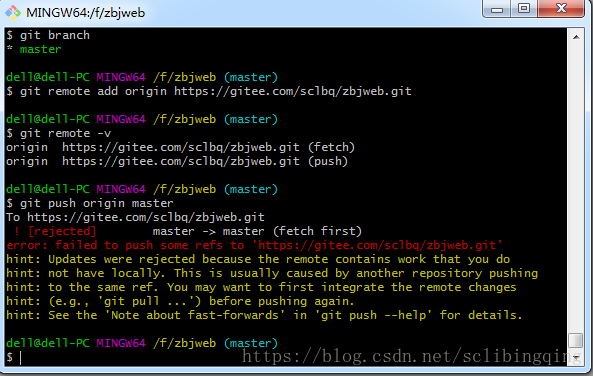 提交到远程报错,如下: