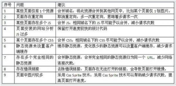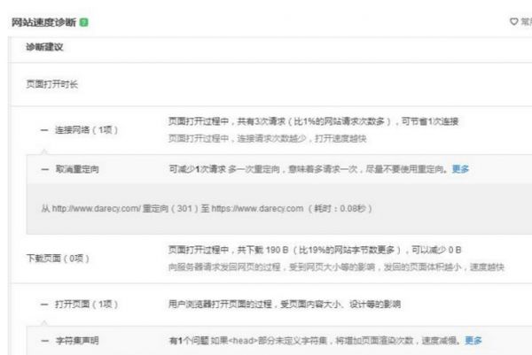 2、网站自身原因,这部分原因可以通过页面优化得以改善,如:相同的静态资源、重定向、错误链接、Gzip压缩、多个JS和CSS、图片大小未定义、字符集未定义等问题。