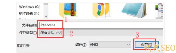 3.保存类型选择“所有文件*.*”,命名为.htaccess并保存