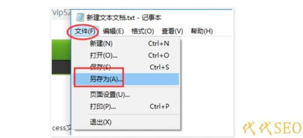 2.这里是不能直接用“重命名”功能将它命名为.htaccess的,需要打开【新建文本文档。txt】-【文件】-【另存为】