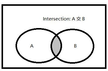 交集:两个集合(记为集合A和集合B)的交集是由既属于A,也属于B的所有元素组成的集合。