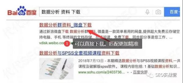 搜索引擎是一个机器,不可能如人那么灵通,所以我们在搜索的时候,要准确的匹配出关键词,例如:【在哪里可以找到数据分析资料下载】我们可以提取几个核心的关键词,比如:“数据分析、资料、下载”对吧,那么我们把这几个词放到搜索引擎上,百度会根据我们的词根,更精准的匹配出优质的搜索结果。