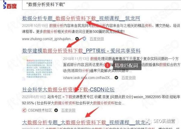 在百度的搜索引擎中,我们如果使用双引号,比如“数据分析资料下载”注意,双引号为小写,不能用大写,这个是告诉百度,我们就要搜索引号中的,需要关键词完全匹配,不接受分词搜索结果,这个时候会更加精准找到我们所需要的资源内容,大家明白了吧。