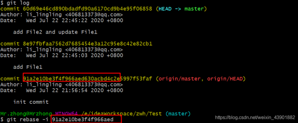 【场景】代码和远程仓库一致,本地修改后存在多次本地commit,本地多次提交的代码没有冲突,rebase合并本地多次commit