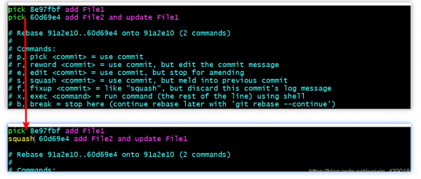 pick:表示需要提交的commit记录|squash:表示合并到前一个commit