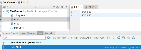 第二次提交: 添加File2文件,文件内容888888,修改File1内容