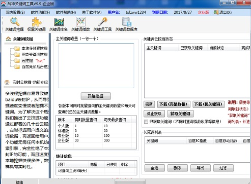 战神关键词工具是目前使用人数最多的专业关键词挖掘工具。软件拥有长尾关键词挖掘、云词库下载、竞争对手竞价关键词分析、网站关键词排名检测等众多实用而强悍的功能,深受广大站长、网站运营主管、竞价专业人员等的青睐。