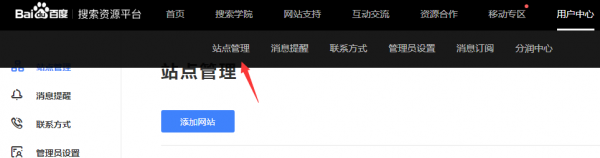 1、添加站点:登录百度站长平台后,点击“我的网站-站点管理”,再点击“添加网站”就可以添加站点了。看图1