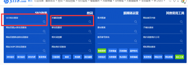 5118 通过对 SEO 各类大数据挖掘,提供关键词挖掘,行业词库,站群权重监控,关键词排名监控等 SEO 工作人员必备工具。