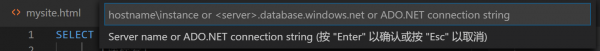 键入 sql 以显示 mssql 命令,或键入 sqlcon,然后从下拉列表中选择“MS SQL:连接”。