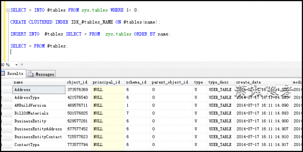如果有特殊需要对临时表中的数据进行排序,这个问题可以通过创建聚集索引来解决。如下所示: