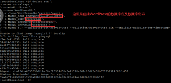 2.创建一个Wordpress数据库容器,并复制以下代码