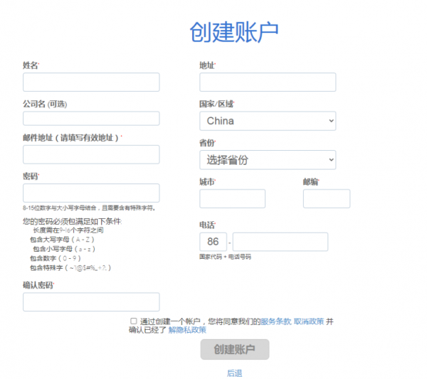这里点击继续付款,进入注册页面,这个需要注意,所有的注册信息是需要填英文的,否则是通不过的,如下图;