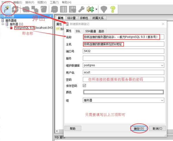 注意:下面图中的“用户名”要根据你连接数据库来,一般为“postgres”