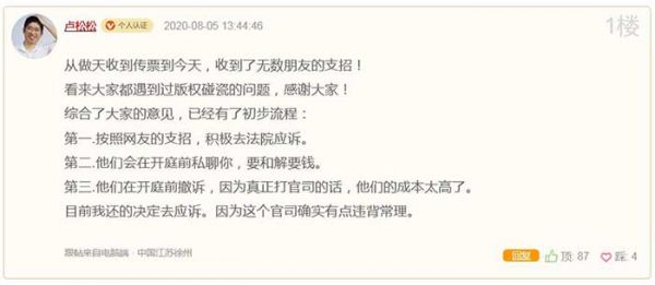 无论咋说,卢松松评价版权侵权算作告一段落,結果还算非常好,也谢谢期内诸位网站站长和粉絲的出新招和激励,但是说句心里话,提议诸位网站站长事后在创作和经营中一定要意识到著作权的难题,网址也罢,自媒体,必须认真细致,绕开著作权坑,由于针对许多 站长和互联网创业者而言来讲解决这类著作权案子,真心实意用时费力!