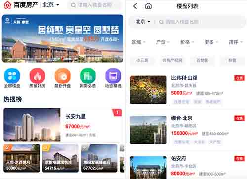 可是跟别的家线上房地产服务平台不一样,百度搜索此次不出示线上房产买卖服务项目,百度房产只出示线上看房,新楼盘平均价、总价格、总面积、房型、开盘和周边环境等房源信息详细介绍和网上咨询服务项目,购房还得去线下推广售楼处,等因此:只出示营销推广,不出示交易量!