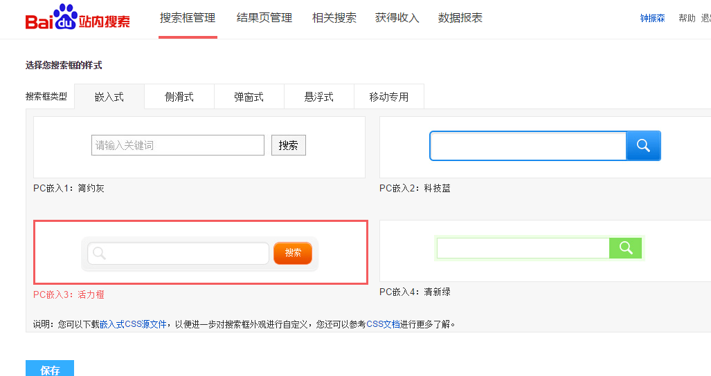 百度搜索站内关键字搜索出示四种输入框款式,多种多样呈现考虑不一样网址的要求,网站站长能够 依据自身网址的具体要求选择一种款式就可以。