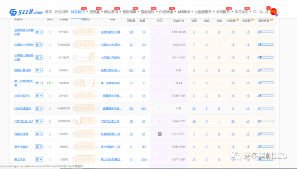 舒适100网,这一网址大家看一下他的网页页面关键字排名,这里边大家随意提取一张他的5118的排行网页页面图: