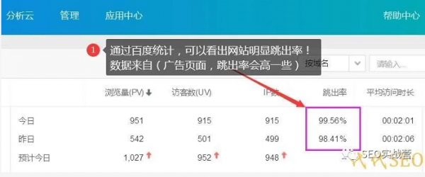 网址跳失率如何计算那?实际上比较简单,大家假定一个网站在某一段时间内有1000不一样浏览量从这一连接进到,另外这种浏览量中有50本人沒有二次访问 个人行为,立即撤出网址,那麼对于这一通道网站地址的跳失率便是50/1000=5%。沒有二次访问 的人越多,跳失率相对性应就越高,明白了吧!
